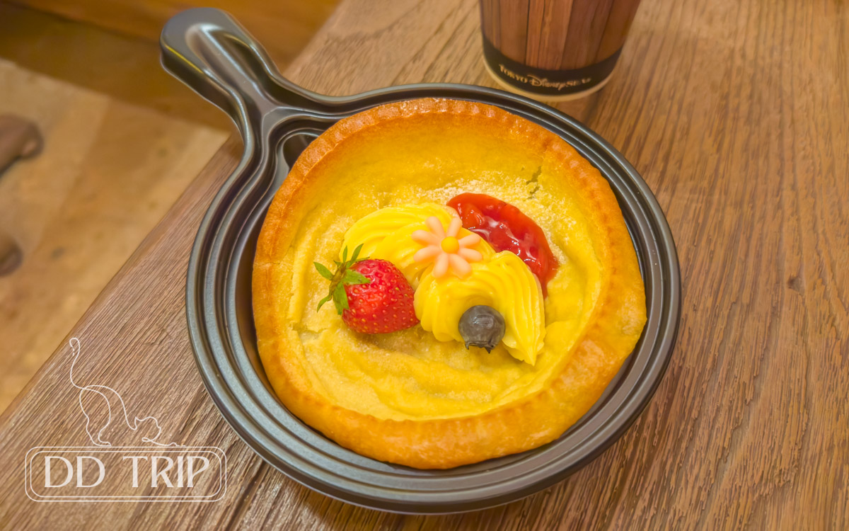 スイーツエバーアフターはラプンツェルが持っているフライパンをイメージしたパンケーキ。